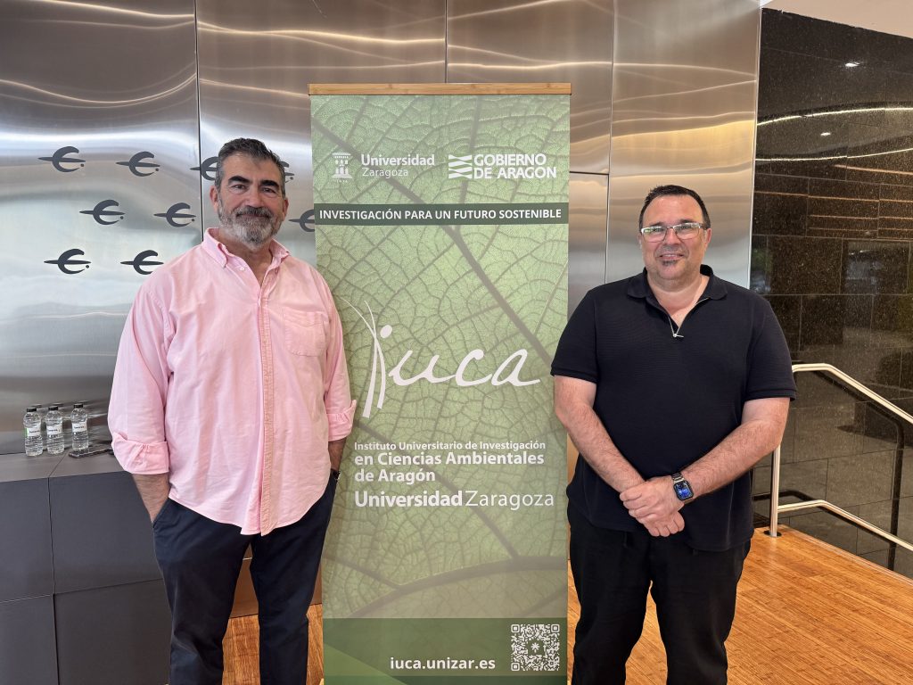 Alfonso Abecia (izda.), director IUCA, junto a Miguel Ángel Saz, subdirector IUCA. Segunda sesión del ciclo de conferencias "Ganadería: pasado, presente, futuro".